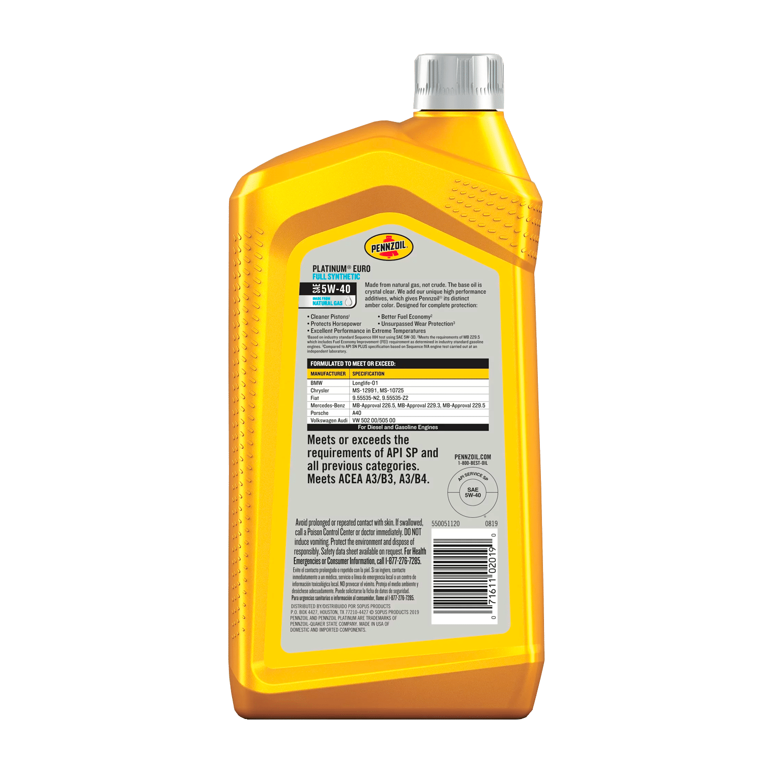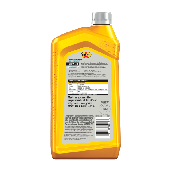 Đặc điểm nổi bật của Dầu Động Cơ Tổng Hợp Toàn Phần Pennzoil Platinum Euro 5W-40, 1 Lít